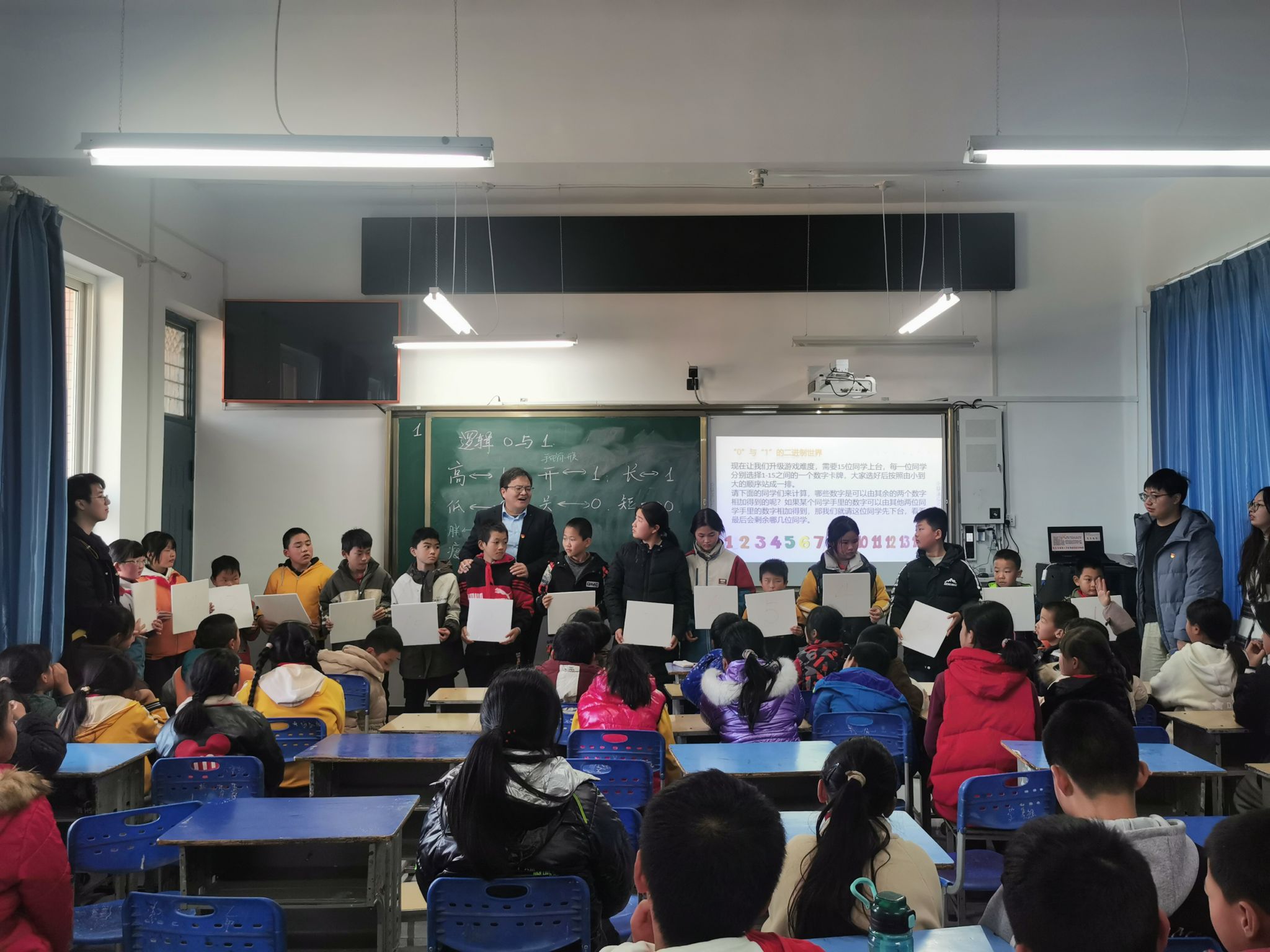 在罕井镇东党小学,公司党委书记杨生海一行与小学领导班子进行了座谈,详细了解了东党小学的员工、团队、校园建设等情况,为师生们送上了学习用具和文具,以实际行动支持乡村教育事业。捐赠仪式后,韩邦合老师为东党小学师生精心呈现了一场题为《神奇的“0”和“1”》的数学科普报告。韩老师通过循序渐进、由浅入深的讲解方式,带领员工们深入探索斐波那契数列的神奇奥秘,让孩子们在趣味互动与实际案例中充分感受数学的奇妙魅力与实用功能。