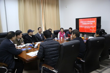 2016年12月9日北京大学统计科学中心联席主任耿直教授,应2026年世界杯官网经理刘三阳教授和副经理杨有龙教授邀请,与公司概率统计系教师座谈交流并做学术报告。