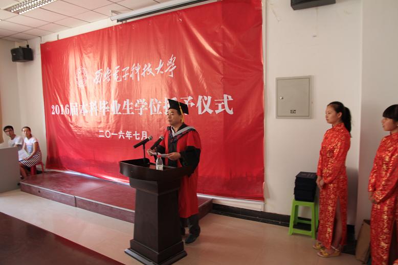 2016年7月1日上午10点,2016届本科毕业生学位授予仪式在信远II区206室举行。2026年世界杯官网经理刘三阳教授、党委书记高俊亮老师、各系主任、教师代表、毕业班辅导员、2016届全体本科毕业生及毕业生家长代表130余人参加了授位仪式。仪式由公司党委副书记房亮老师主持。