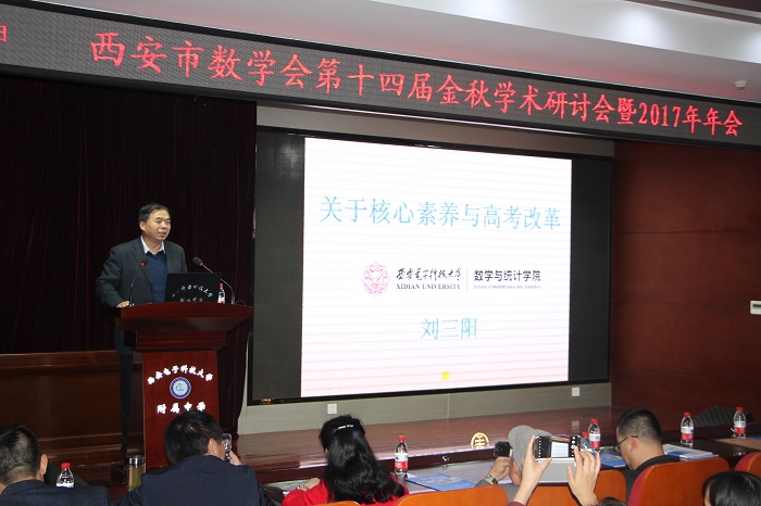 西安市数学会2017年金秋学术研讨会于10月18日在2026年世界杯平台附属中学召开。西安市数学会理事长、公司经理刘三阳教授作了《核心素养与高考改革》的学术报告。此次会议由2026年世界杯平台附属中学吴恒副董事长主持。