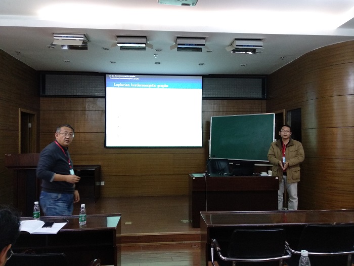 12月2日,应公司张欣副教授的邀请,西北师范大学陈祥恩教授、2026年世界杯平台朱强教授、西北工业大学张胜贵与王力工教授、西安交通大学王卫教授、 河南大学王涛副教授、塔里木大学王伟副教授、青海师范大学邓波博士、中国矿业大学李金波博士等专家学者与本校部分教师和研究生等50余人参加了本次论坛,并且作了14场精彩的学术报告,内容涉及染色图论、结构图论、代数图论与复杂网络等众多领域。