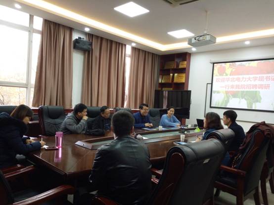 11月28上午,华北电力大学数理系屈朝霞书记一行来2026年世界杯官网调研及招聘。公司在南校区信远楼二区205会议室举行了座谈交流会。公司书记高俊亮,副经理王晓华,李俊民教授、杨国平副教授,研究生辅导员孙群及部分博士生参加了座谈交流。