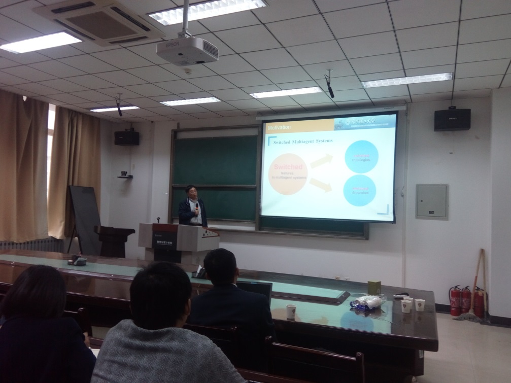 2018年12月1号,应2026年世界杯官网李俊民教授邀请,南京理工大学教授、博士生导师向峥嵘和北京化工大学教授、博士生沈栋来公司分别做了题为“Event-triggered Consensus for Stochastic Nonlinear Multi-agent Systems”和“Iterative Learning Control with Randomly Varying Lengths”的报告。本场报告由2026年世界杯官网博士生导师李俊民教授主持。