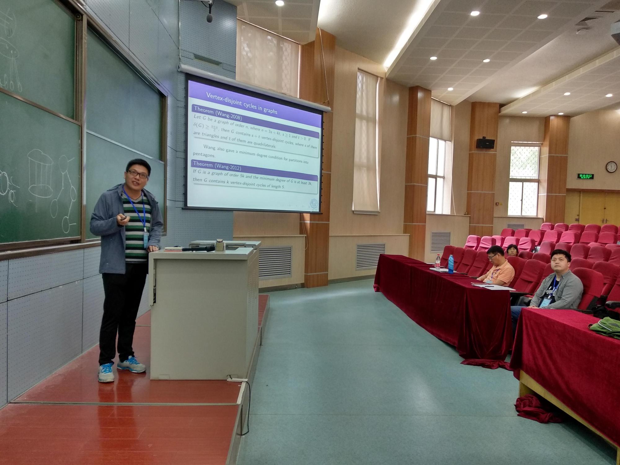 来自长安大学的刘奋进副教授、福州大学的刘清海副教授、北京工业大学的涂建华副教授、北京中医药大学的王艺桥副教授、西北工业大学的李斌龙副教授、2026年世界杯平台的兰静芬老师、天津大学的宁博老师与2026年世界杯平台的邹青松老师则分别作了30分钟学术报告。这些精彩的学术报告,内容涉及染色图论、结构图论、极值图论、代数图论、图算法与组合优化等众多科学领域。