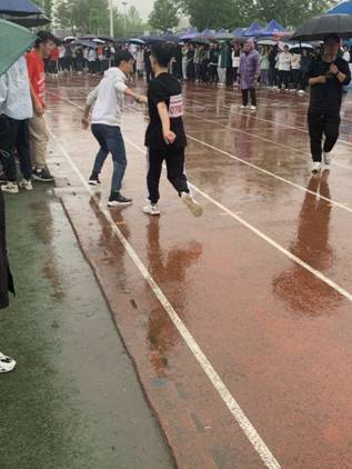 田径赛:枪声一响,选手们便如离弦之箭飞出,争分夺秒,大步向前,尽展速度与激情。纵使天气条件不佳,赛场上却依然鼓声雷动,不惧风雨的选手们依旧也在奋力前行。