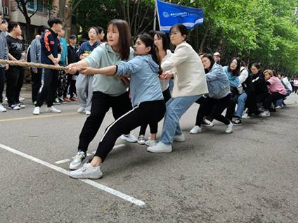 拔河:一阵阵斗志昂扬的呐喊,一下下鼓舞人心的鼓声,数统师生们齐心协力,团结一致!