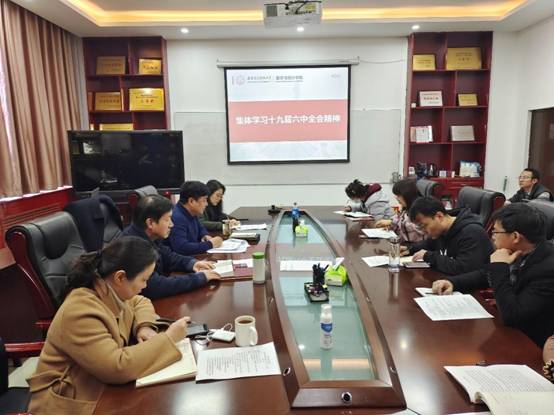 其他与会同志也逐一发言。党委书记杨生海最后作总结发言,党的十九届六中全会是在党成立100周年重要历史时刻,在“两个一百年”奋斗目标历史交汇点上召开的一次具有重大历史意义的会议。全会审议通过的《中共中央关于党的百年奋斗重大成就和历史经验的决议》,是新时代实现中华民族伟大复兴的行动指南。学习好、宣传好、贯彻好党的十九届六中全会精神,是全院师生当前和今后一个时期一项重大政治任务,后续我们将稳步推进,逐步掀起学习热潮。