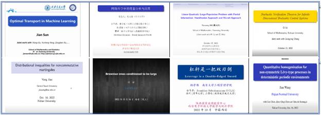 开幕式后,大会特邀报告随即开始。西安交通大学孙剑教授、南开大学史永堂教授、山东大学聂天洋教授、四川大学吕琦教授、中南大学焦勇教授、北京师范大学何辉教授、南京大学杨学伟教授、福建师范大学王健教授等八位国家级人才作了精彩的大会报告。报告围绕随机分析、控制理论、量子概率、金融数学等主题,内容丰富、精彩纷呈,引发了参会学者们的深入交流和讨论,会议气氛活跃而热烈。