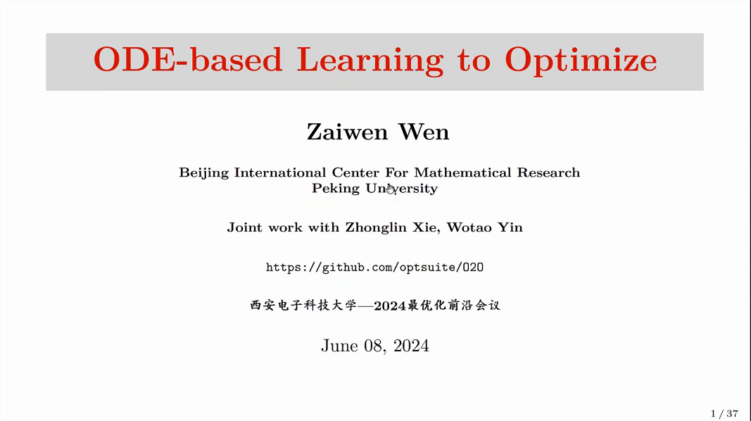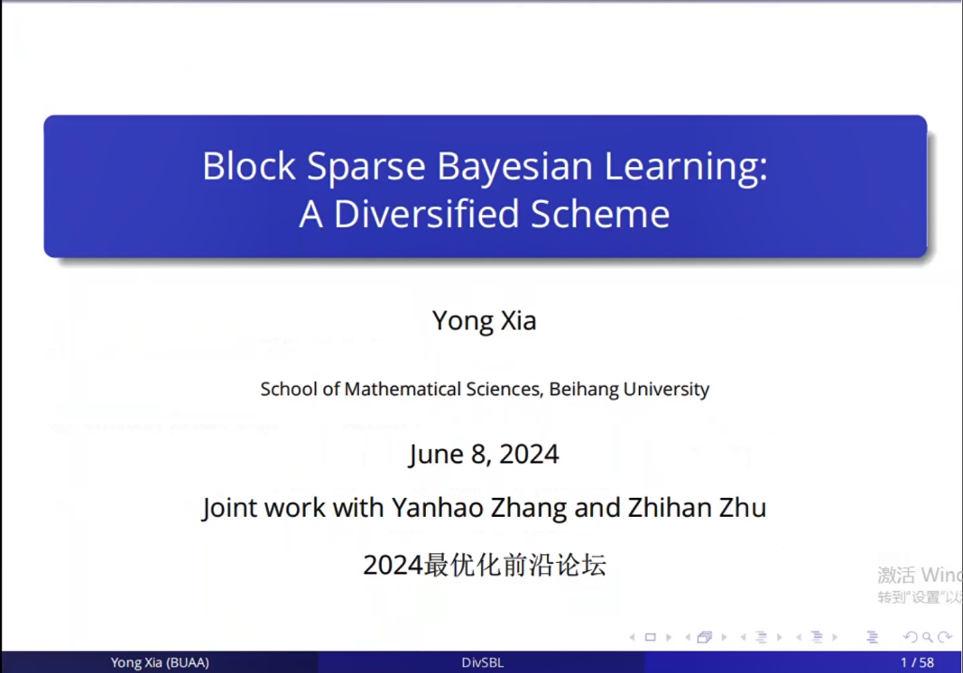 论坛分为四节,包括大会邀请报告及自由提问研讨环节。6月8日上午第一节,北京大学文再文教授、北京航空航天大学夏勇教授分别做了题为“ODE-based Learning to Optimize”和“Block Sparse Bayesian Learning: A Diversified Scheme”的报告。