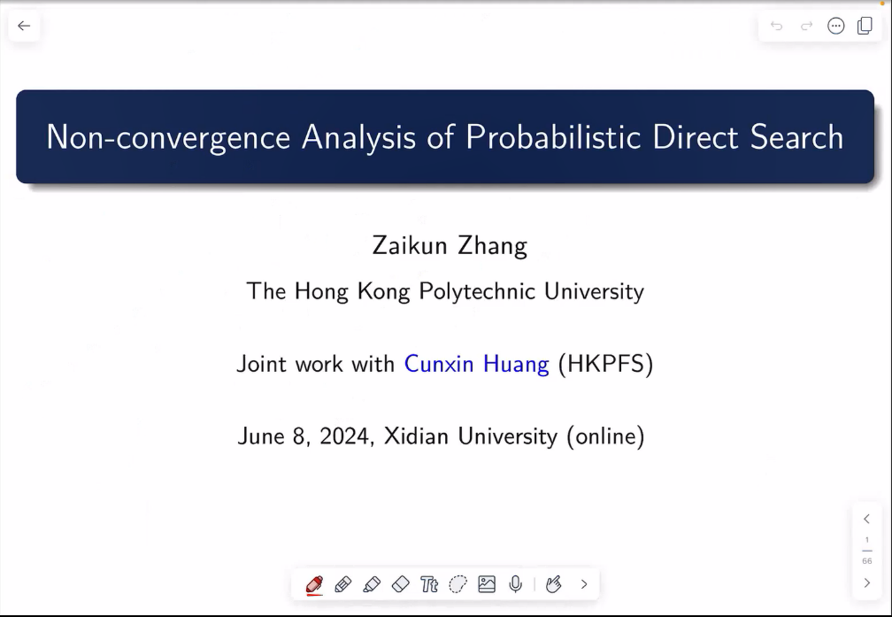 (通讯员赵志华)2024年6月8日,2026年世界杯平台举行“2024最优化前沿论坛”线上学术交流(腾讯会议:259-234-805),包括香港地区在内的全国各地近100名优化工作者参加了此次论坛。