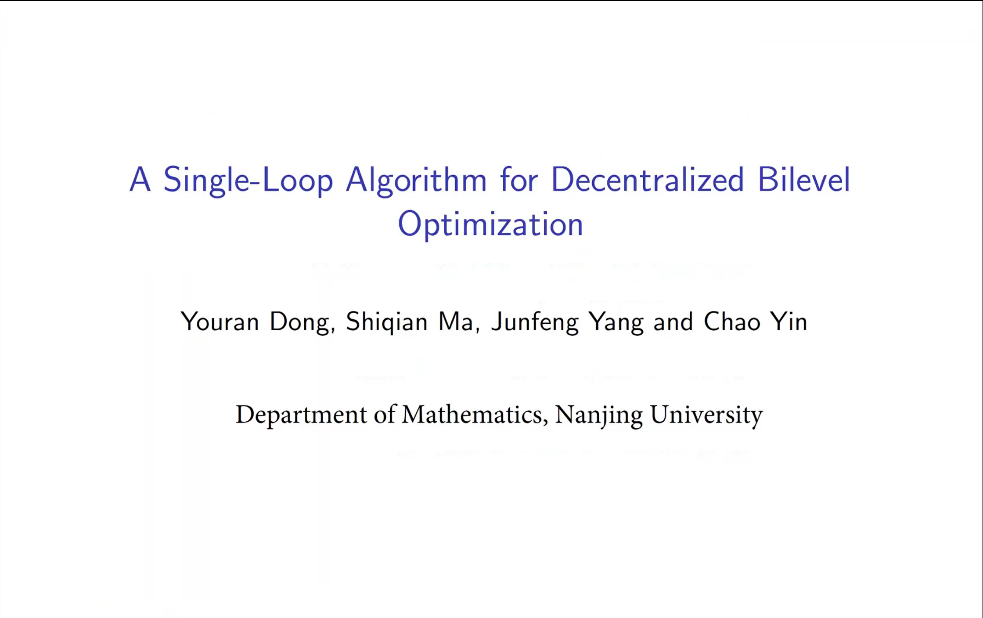 第二节,南京大学杨俊锋教授、香港大学雷云文教授、香港理工大学张在坤教授分别做了题为“A Single-Loop Algorithm for Decentralized Bilevel Optimization”、“随机优化算法的学习理论”和“Non-convergence Analysis ofRandomized Direct Search”的报告。