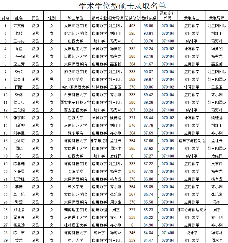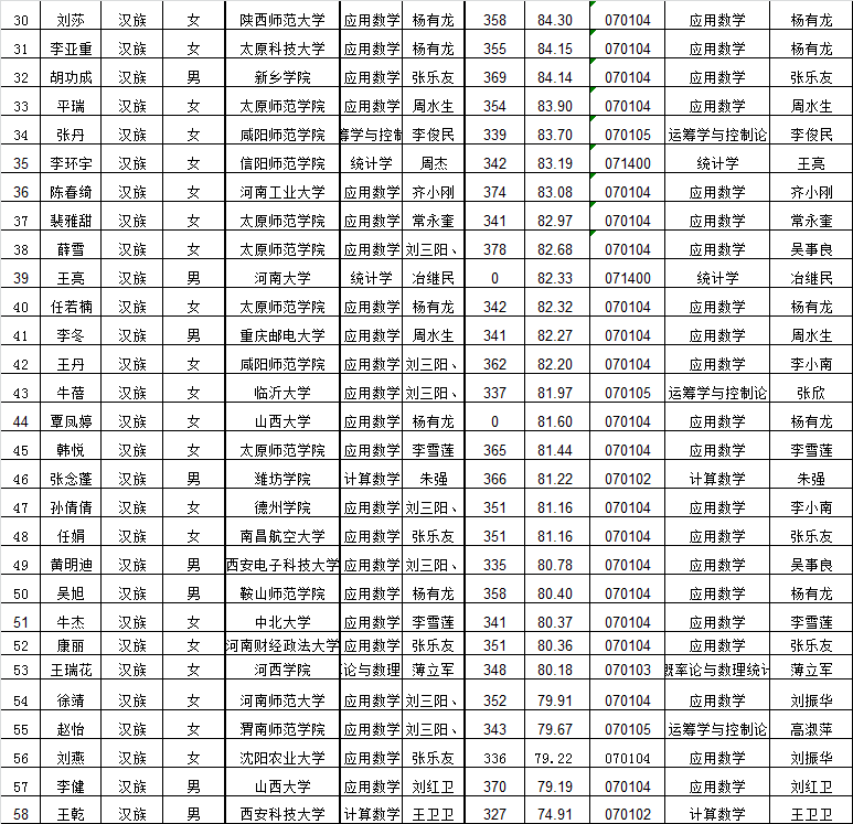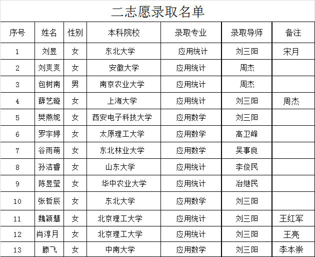2017年硕士研究生录取名单