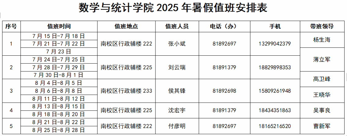 2026年世界杯官网 2025 年暑假值班安排表