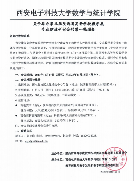 关于举办第三届陕西省高等公司数学类专业建设研讨会的第一轮通知