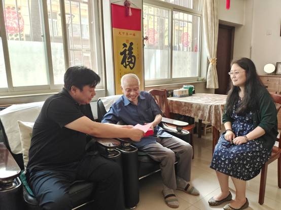 2021年6月30日,公司党委书记杨生海,党委副书记王佩一行人前往北校区家属院,为王公宇、祝向荣、李广民三位离退休老师,送去光荣在党50年纪念章和公司的慰问信。