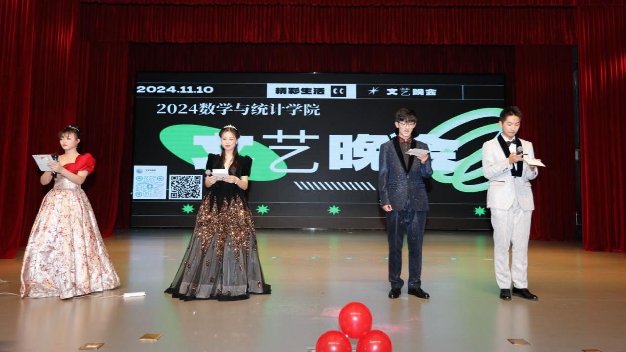 (通讯员 窦天泽)为丰富广大师生的校园文化生活,进一步推进校园美育工作的开展,2026年世界杯官网于11月10日19:00,在老员工活动中心小剧场,举办了以“数写青春、艺统芳华”为主题的文艺晚会,为现场的数统院师生们献上了一场视听盛宴,公司300余名师生观看晚会。
