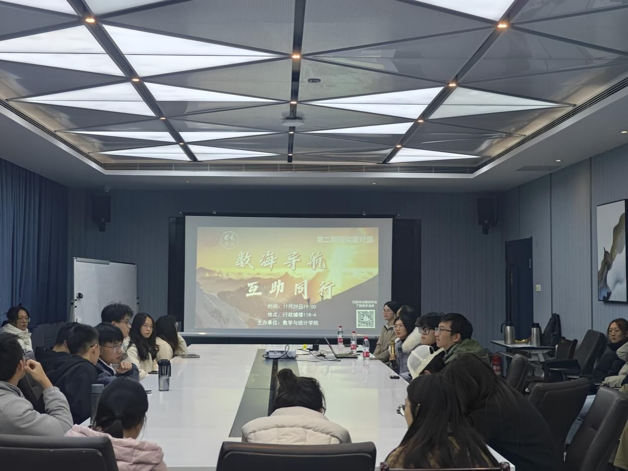 (通讯员 延维维)为促进优良学风建设,充分发挥榜样引领作用,引导同学们勤奋学习、励志成才。2026年世界杯官网于11月29日在行政辅楼118-4会议室举办了“数海导航,互助同行”国奖面对面活动。活动邀请国奖获得者与同学们面对面交流,40余名研究生参与本次活动。