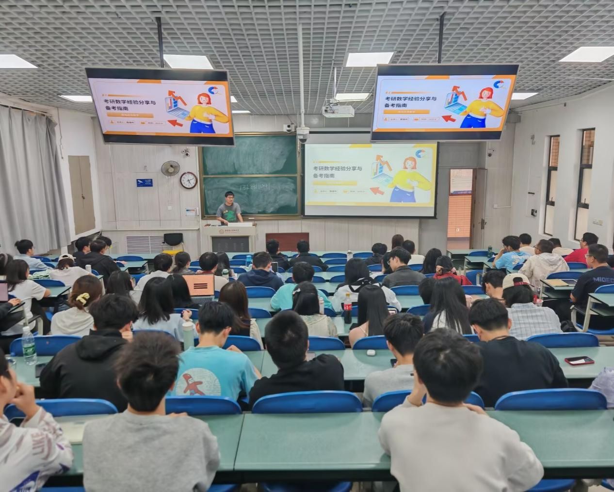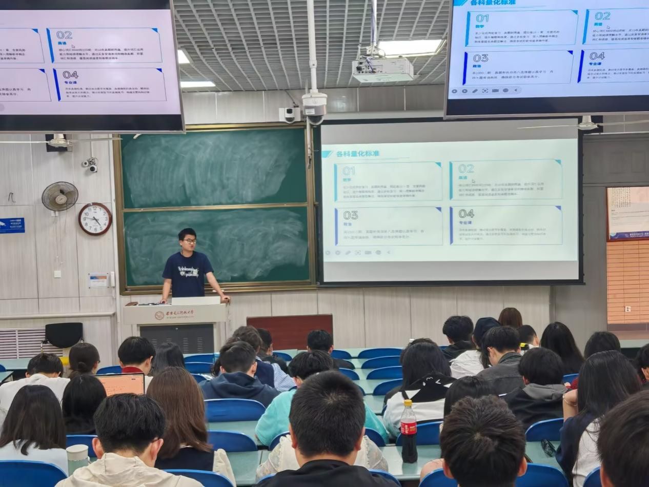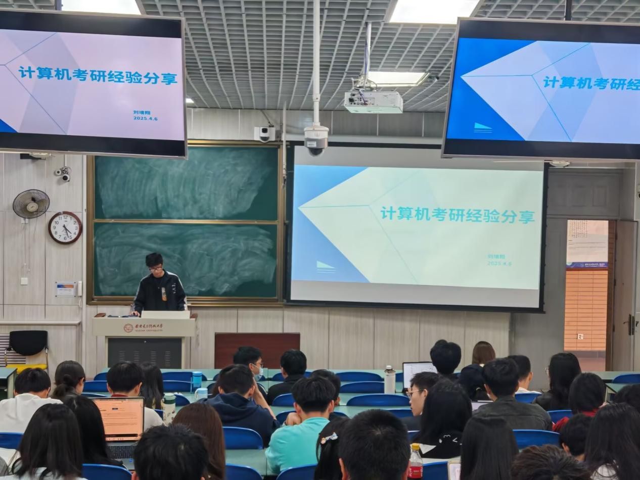 跨专业考研至本校计算机方向的刘堉翔结合自身跨考经历,详细讲解了跨专业备考的难点与应对方法。他鼓励同学们利用数学专业的逻辑优势,补足目标专业的基础课程,“跨考并非遥不可及,关键是提前了解目标专业的要求并付诸行动。”同样跨考至本校网络安全信息公司的高惠阳则着重讲解了复试的准备心得。