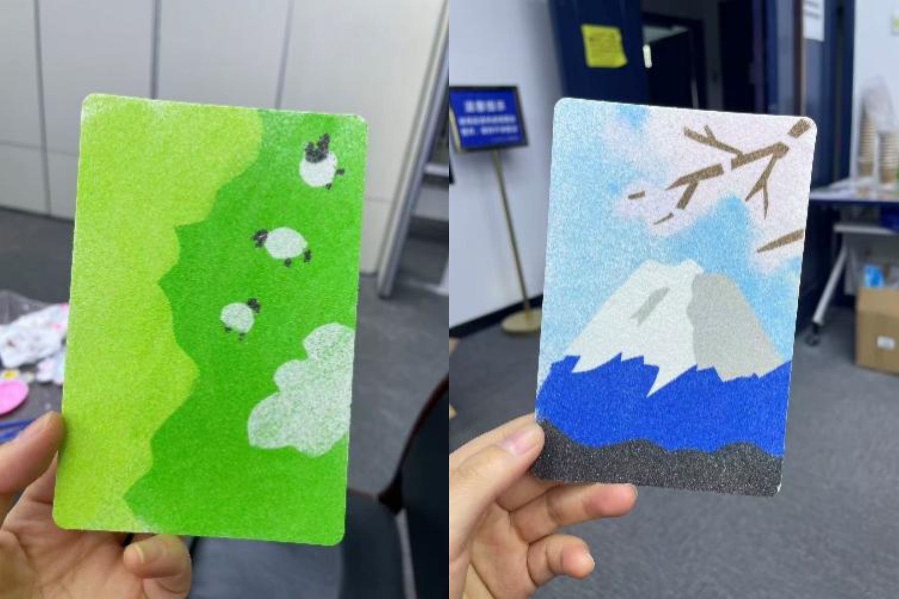 沙画体验区内,同学们以细腻彩沙为媒介,在光洁的沙画纸上铺洒、勾勒、点染,自由组合出各种图案。从远山层云、湖光树影的简约风景,到灵动可爱、憨态可掬的卡通形象,不同色彩与纹理在指尖流转中渐渐成形。现场氛围轻松愉快,创作中,沙的流动性赋予作品独特的呼吸感与即兴之美。“动手堆沙、抹平的过程让人很专注,也能静下心来。”参与员工高静怡分享道。沙画不仅是一门视觉艺术,更成为一种动态的冥想方式,让参与者在专注中舒缓压力,于流动的创作中收获一片宁静而愉悦的心灵角落。