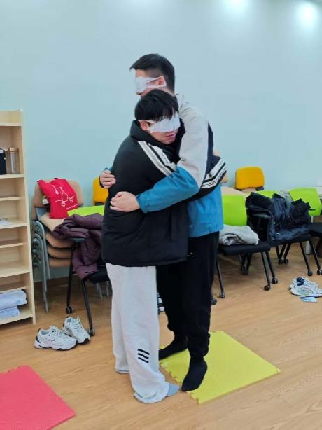 活动在舒缓宁静的氛围中悄然开启。在老师的轻柔引导下,同学们跟随一段简短而富有节奏的“抖动练习”,在七分钟的音乐里,渐渐放下思绪的纷扰,将注意力放在自己的身体和呼吸上。身体的轻微摇动帮助大家放松紧绷的身体,也在动静之间为接下来的深度体验铺就了心灵的温床。这一环节不仅让身心得到初步的舒展,更在团体间悄然构筑起一片安全、温暖而开放的交流空间。