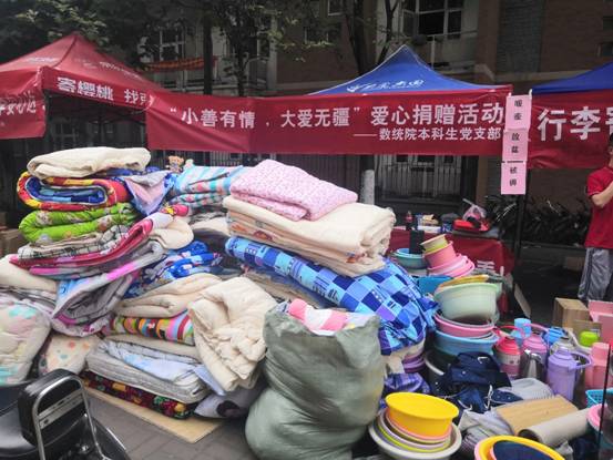 其他院系毕业生们,得知捐赠活动后,也纷纷加入到捐赠活动中来,他们将被褥、水盆、暖壶清洗干净,精心打包,前往外场捐赠。一时间,爱的暖流汇聚西电校园:一床床简简单单的被子,一个个大大小小的水盆,一排排五颜六色的暖壶,都承载着毕业生学子们对老人的关爱,尊老敬老爱老是中华民族的传统美德,捐赠活动充分体现了老员工宽广的爱心,老吾老以及人之老,他们的无私行为为这个美丽的毕业季谱写了一篇篇爱的乐章:小善有情献爱心,大爱无疆书别离,他们赋予了这个毕业季更加动人的场面和更加非凡的意义!
