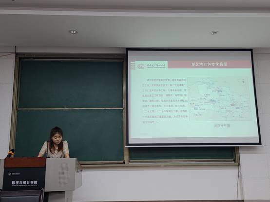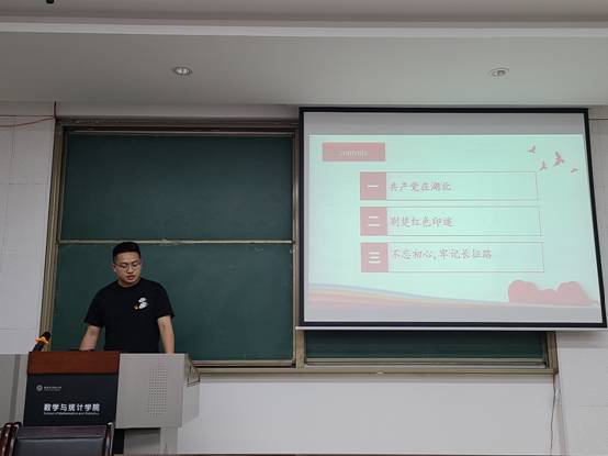 第二位宣讲人蒋浩然同学从共产党在湖北、荆楚红色印迹和不忘初心牢记长征路三个方面向我们讲述了荆楚大地的红色故事。