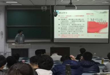 优秀学长学姐分享会也随之举行,本次分享主要是数学建模竞赛经验介绍,学姐吴潘婧就数模简介、建模准备、竞赛经验三个模块做了分享交流,她讲了建模初期尽早组队以及队友之间合理分工合作的必要性,要合理分配“建模“,”编程“,”论文“人员。紧接着她通过分析”A“、”B“、”C“各类赛题的特点,告诉同学们要合理选题,又从知识基础、”常用建模“、“入门书籍“、“提升书籍”等方面谈到“建模准备“,她还就”答题的技巧“并且分享给同学们一些用到的书籍。第二位分享的是网信院学长何昆岭,何学长强调了在编程过程中以及使用matlab的一些注意事项,他给同学们推荐了一些学算法的书籍,告诉同学们一些算法技巧,他讲到在建模过程中务必要与队友及时沟通交流、合理安排时间,同时还谈到”作图的重要性“,强调作图要美观,排版要工整,强调了心态的重要性,希望同学们能”灵活应变,及时沟通,坚持下来就是胜利“。最后由负责论文部分的朱雨恒学长进行总结,他从论文赛前必备,”论文比赛时间线“等几个方面进行了分享,警示同学们不要怀揣着抱大腿的心态来寻找伙伴,而是要强强联合,在相互磨合中实践检验彼此是否能合作共赢,在赛场上要做到专注,不鸽不水,在比赛前期就准备好论文模板,而在赛程末段则应全身心投入论文的细节美化。