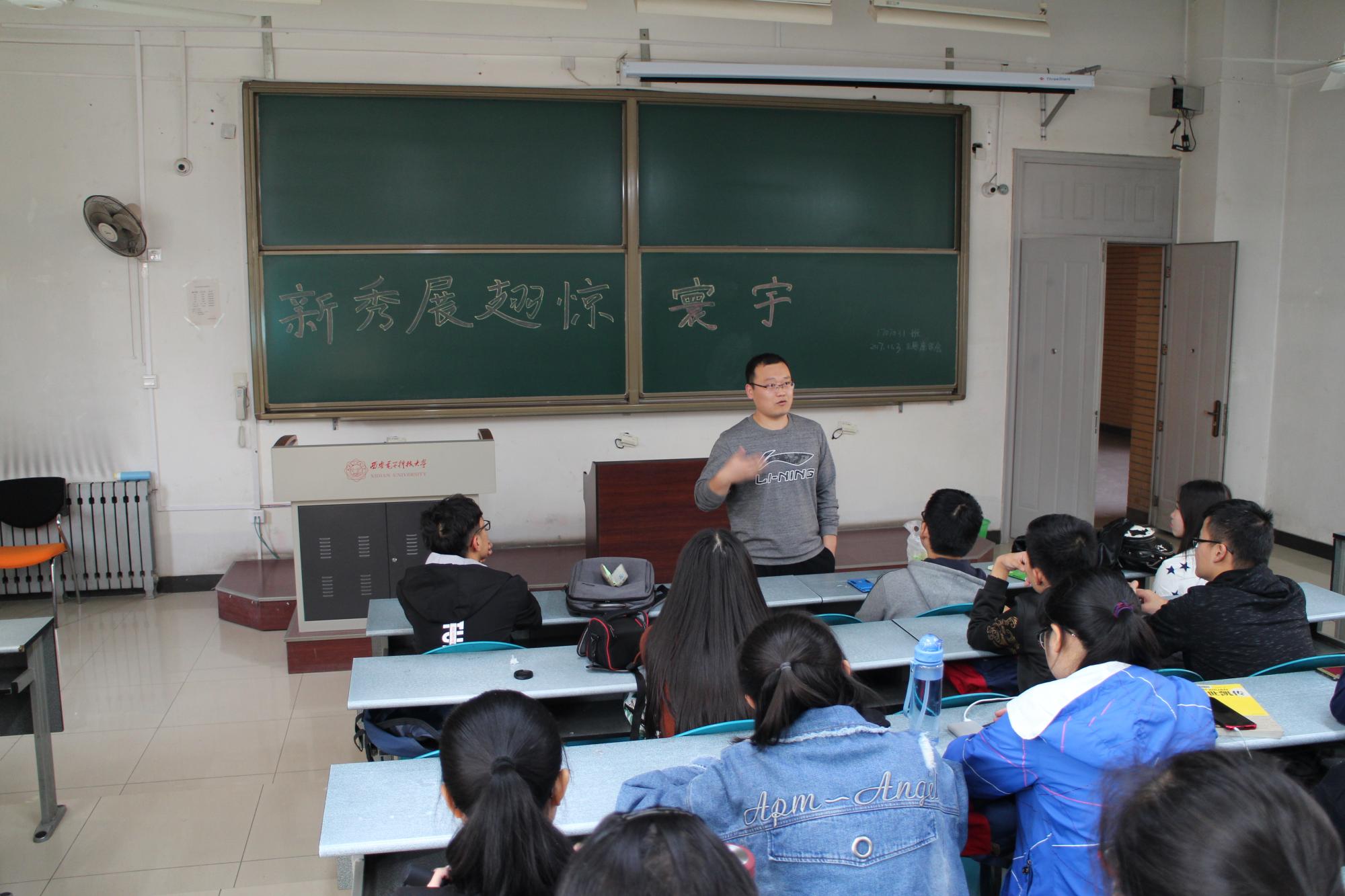 首先是班主任李善兵老师对此次座谈会进行导入,三言两语就为我们介绍了“大学”究竟是一个怎样的地方--------的确与中员工活不同,我们不需要像高三备考一样每天埋头苦读;但是在这里我们同样不能松懈,依旧忙于学习,奔走在各个员工组织之间。大学并不只是混日子,只为拿到一纸文凭,正相反,它为我们提供了一个更高的平台,让我们有机会更好的提升自己。