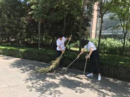 本次实践活动是清扫公司卫生责任区,同学们纷纷穿上了数统院文化衫,文化衫是公司为了同学们统一实践活动特意定做,阳光下胸前彩虹色的公司图标飞扬飘洒。同学们分工明确各司其职,在尘土飞扬中,感受着劳动的快乐。