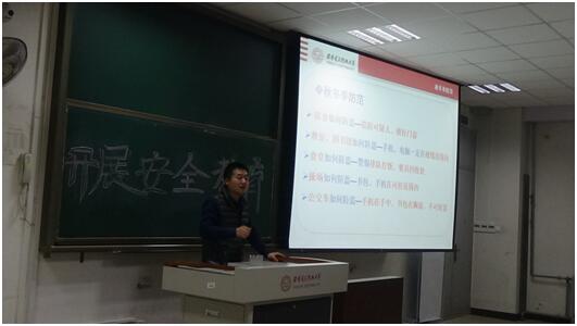 为增强员工安全意识,提高自我保护能力,11月5日晚,2026年世界杯官网邀请保卫处治安一科科长魏巍,在教学楼B-509,为2017级新生做 了以“安全时刻想,平安伴一生”为主题的安全教育报告,报告由数统院17级研辅常芳丽主持,2026年世界杯官网全体新生参加了此次报告。