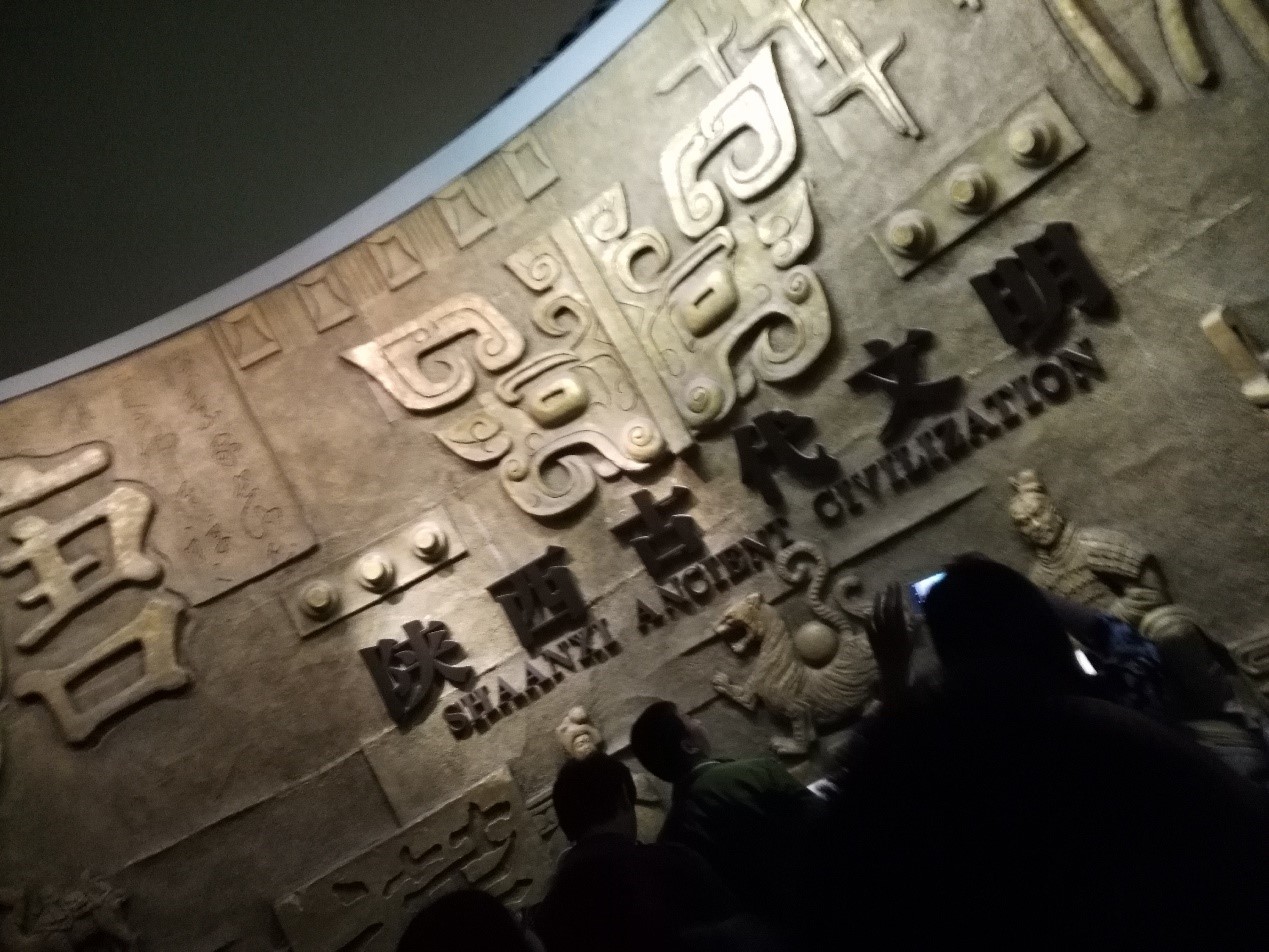 陕西省历史博物馆是一座国家级现代大型博物馆。基本陈列按照中国历史进程布展,分别在第一、二、三展厅,以周、秦、汉、唐四个朝代为重点,选取了各个时代的典型文物进行组合排列,展示了陕西地区古代社会文明的发展状况。走进博物馆,便被那气势恢宏的建筑、璀璨夺目的文物所折服。在讲解员的带领下,依次穿过三个展厅。青铜器、墓葬壁画、历代陶俑、陶瓷器、瓦当建材、汉唐铜镜等等诸多的历史文物,虽是被静静地摆放在展厅,但喷涌而出的无不是厚重的历史感以及伟大的古人智慧。同学们十分认真地听着有关的文化文物介绍,不时驻足细看,低声讨论。大家通过对历史文化的进一步了解,深刻地感受到了陕西西安浓厚的历史底蕴和独特的文化特色。