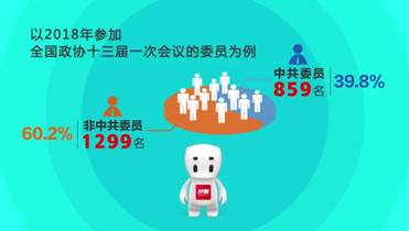 以2018年参加全国政协十三届一次会议的委员为例,在其名单里非中共委员比例占60.2%,56个民族都有人入选全国政协,其中女性委员占20.4%,女性比例在最近几届也是逐次有所递增,其中第十三届一次会议中所占比例为例届以来最高。