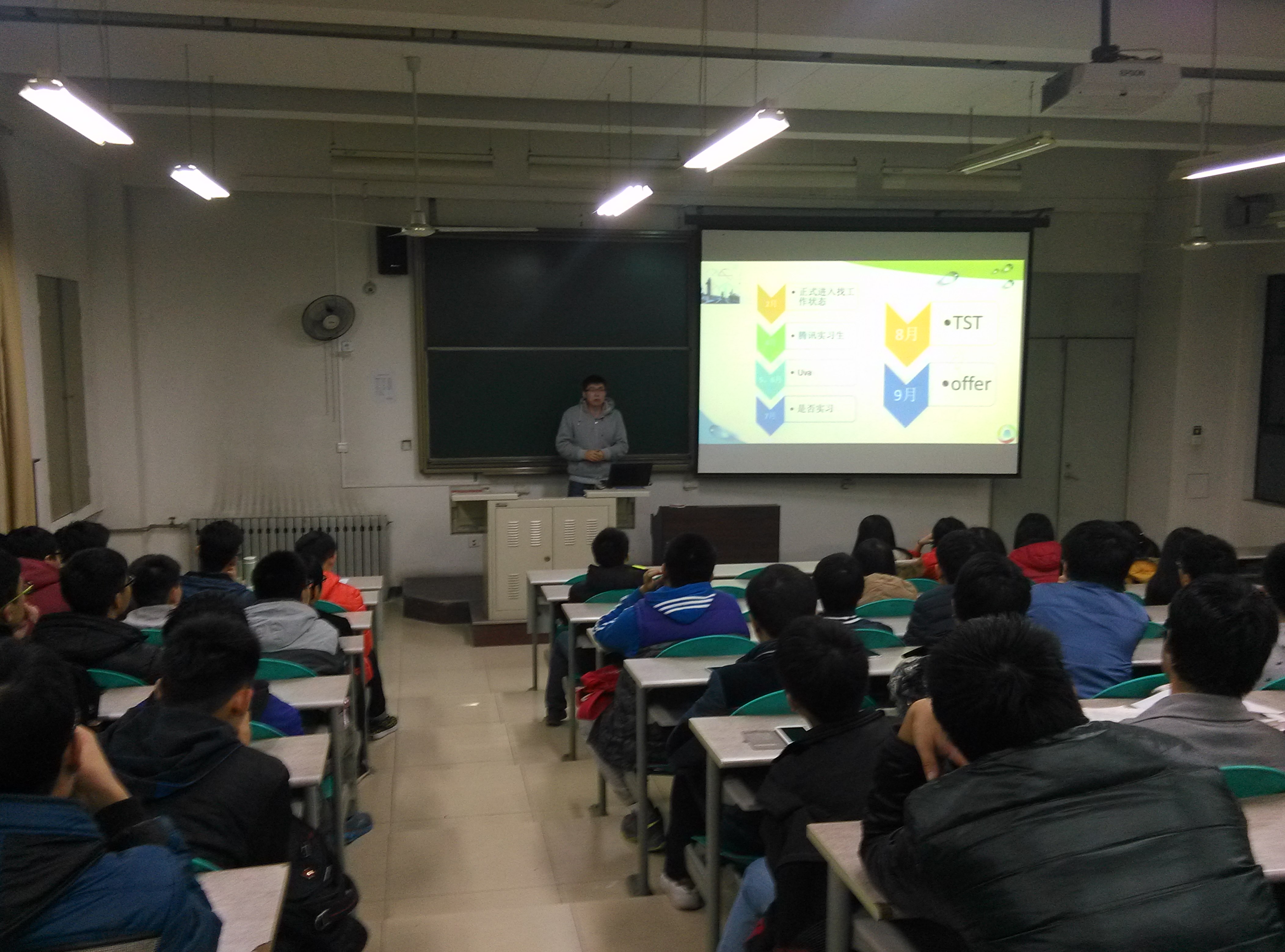 2015年12月13日晚6点30分,公司在教学楼B楼316室举办学习经验交流会,由2012级数学与应用数学专业张耀琦同学做交流报告,120余名同学参加了本次交流会。