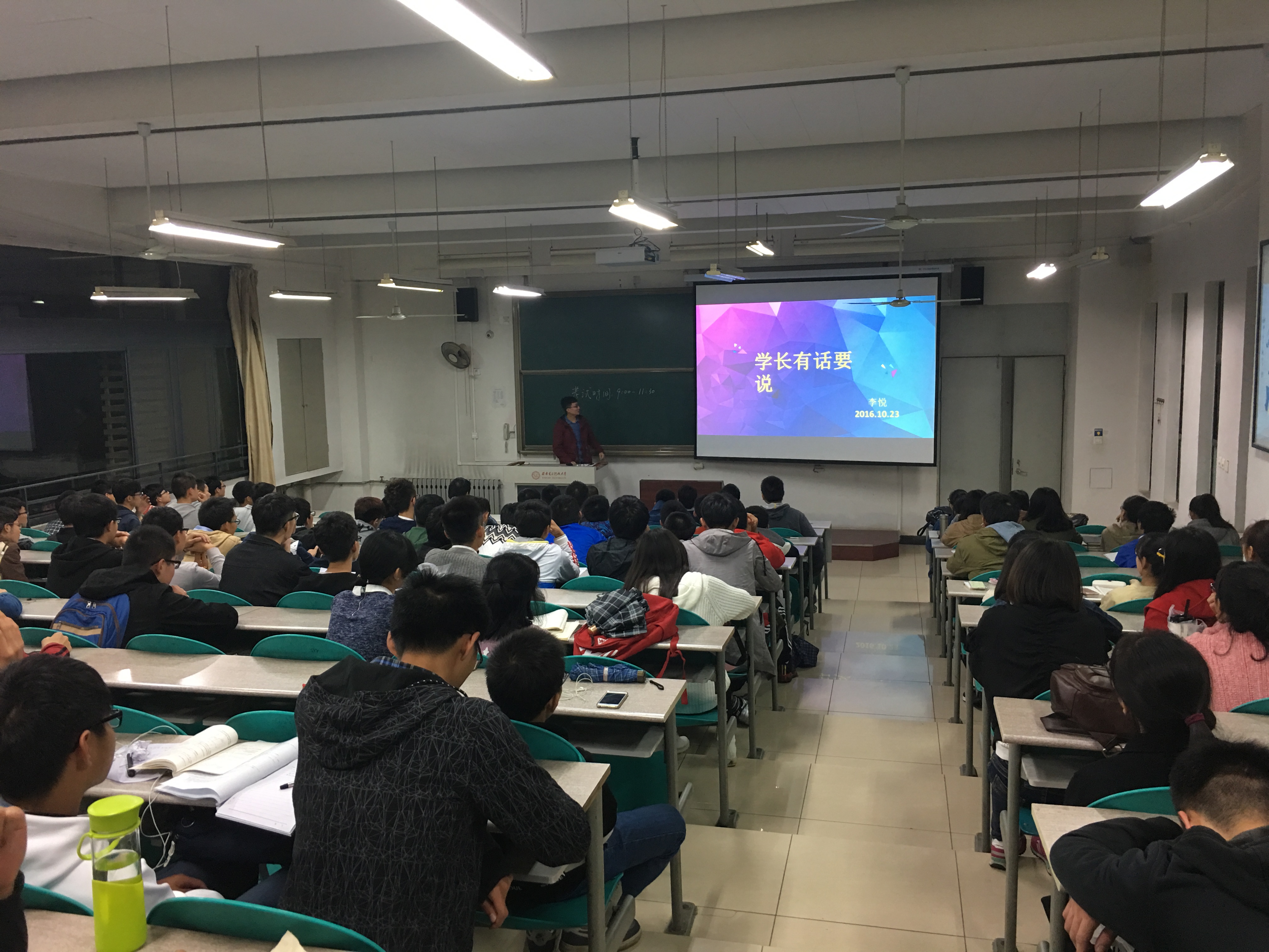 2016年10月26日晚6:00,为了让数统院大一新生了解老员工活,认识提升个人能力的重要性,由靳志伟老师组织的学长学姐学习交流会在B316举行。2013级成绩优异成功保研的学长学姐向数统院全体大一新生介绍了经验。