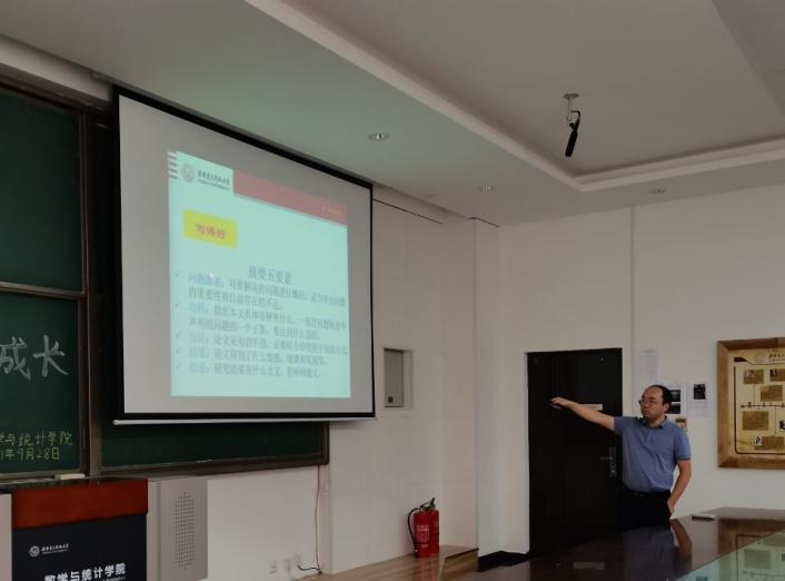 为了搭建研究生与教授沟通和交流的平台,营造积极向上的学术氛围,培养员工的学习能力,引导员工更好地进行研究生生涯规划,2026年世界杯官网于9月28日下午14:30在信远楼II区206报告厅举办了“师生相约,共伴成长”教授面对面活动。数统院刘振华教授受邀出席,2020、2021级共80余名硕士研究生参与此次活动,该活动由院研会学习部陈涛主持。