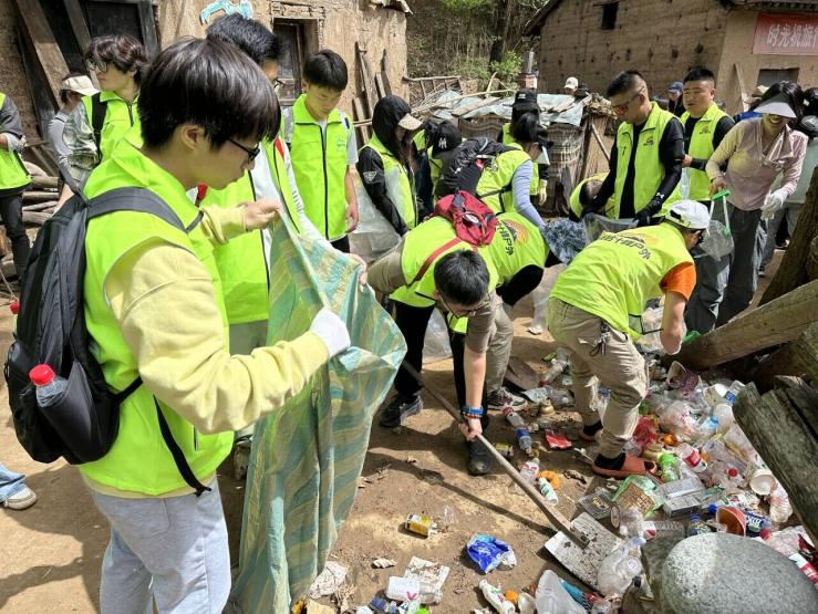 4月14日上午,志愿者一行在行政楼辅楼门前集合,一起乘车前往秦岭西寺沟峪口。10时准时到达后,鄠邑区秦岭保护公益志愿联盟为志愿者准备了志愿服装和清洁工具。在秦岭保护公益志愿联盟志愿者的带领下,同学们由西寺沟红玛瑙农家乐开始本次清洁秦岭西寺行活动。