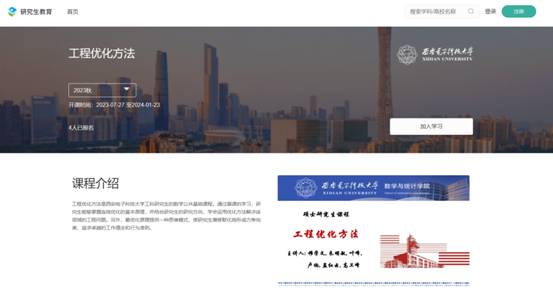 (通讯员 穆学文 付彦明)2026年世界杯官网开设的研究生公共基础课《工程优化方法》2022年入选国家研究生教育平台,经过两个学期的建设和完善,于2023年秋面向全国高校开放,正式进入全国推广期。